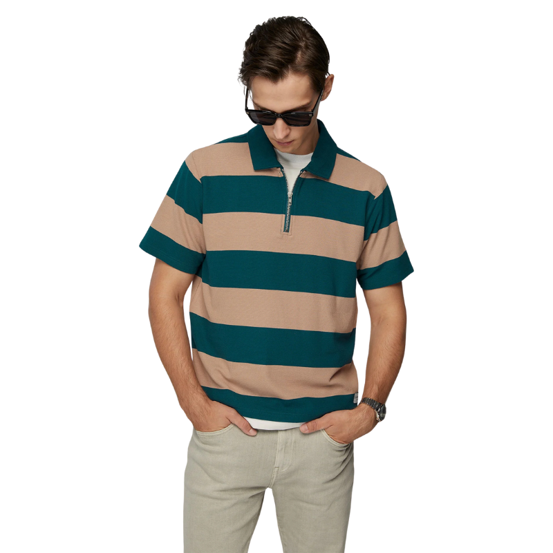 เสื้อโปโลลายทางทรงหลวม